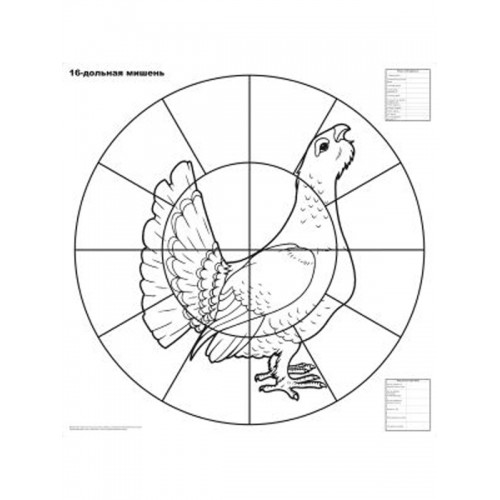 Мишень для пристрелки дробовых ружей с изображением глухаря, разделенная на 16 долей, изготовлена из высококачественной бумаги.