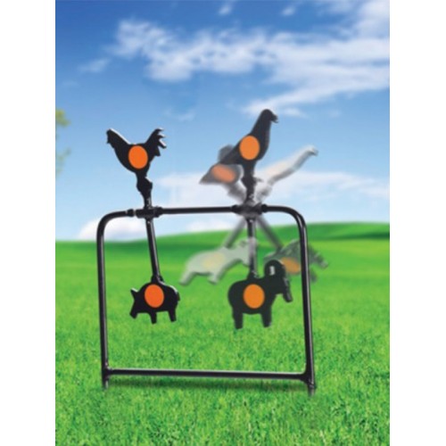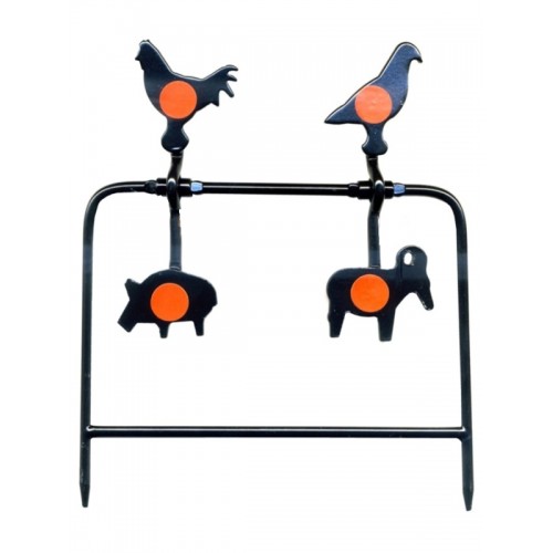 Мишень для пневматики Gamo - искусственная цель для развлекательной стрельбы на открытом воздухе. Дачный отдых или пикник можно отлично разнообразить коллективной стрельбой из пневматического оружия. Изделие не требует сборки и инструмента для сборки, быстро и легко устанавливается. В нижней части прутья рамы мишени заострены для установки в грунт. Представляет собой прочную стальную раму, на которой на шарнирах размещены стальные силуэты зверей и птиц (кабана, барана, петуха и голубя). Устройство возвращается в исходное положение после попадания пули, поэтому Вам не надо заниматься сменой мишеней. В центр каждого силуэта нанесен самоклеющийся стикер (наклейка) оранжевого цвета круглой формы. Стойкое антикоррозионное покрытие позволяет использовать мишень в неблагоприятных погодных условиях. Для того, чтобы разнообразить стрельбу по мишени производитель укомплектовал её надувными цветными шариками.