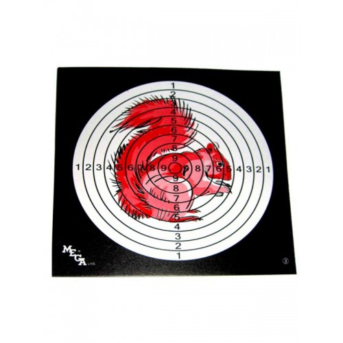 Мишень для стрельбы из пневматического оружия цветная с изображением белки. Выполнена из мягкого картона. Размер листа: 14 х 14 см. Диаметр мишени: 12см. Количество: 50 шт.