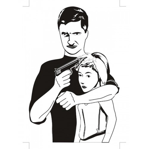Мишень размером 52 х 75 см предназначена для стрельбы из пневматического оружия. На мишени изображена фигура вооруженного человека с заложником.