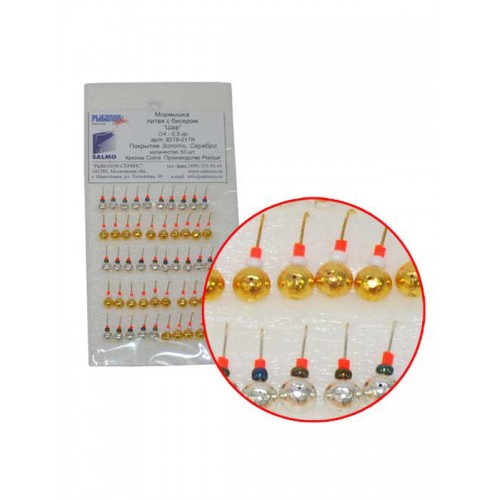 Набор литых свинцовых мормышек типа Шар, оборудованных крючком Cobra и оснащенных яркими бисеринками.