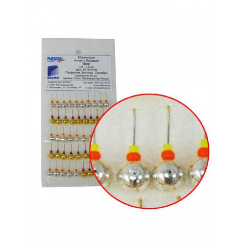 Набор литых свинцовых мормышек типа Шар, оборудованных крючком Cobra и оснащенных яркими бисеринками.