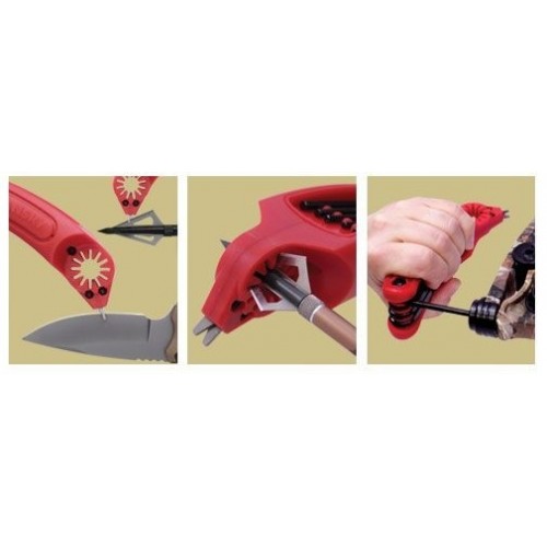 Мультиинструмент Bowsharp Bowhunting Tool – универсальный инструмент для стрелков из луков и арбалетов. Карбидовый точильный камень предназначен для затачивания, как ножей, так и наконечников стрел. Для обеспечения наилучшего качества и удобства затачивания, точильный камень вынесен на внешнюю сторону рукоятки. В рукоятку также интегрирован специальный ключ для безопасной замены и установки наконечников. Разработанный при участии профессиональных лучников. Bowsharp Bowhunting Tool комплектуется набором из 5-ти шестигранных ключей (от 5/64 до 7/32), плоской и крестовой отверткой. Удобная прорезиненная рукоятка обеспечивает уверенное обращение с инструментом в любых погодных условиях.
