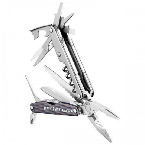 Мультитул Leatherman Juice CS4 Granite 831988 – самый тонкий вариант серии Juice, что позволяет носить инструмент в карманах брюк, не боясь, что он будет заметен окружающим. Особенностью многофункционального предмета считается полностью стальной корпус и накладки на рукоятках из анодированного алюминия. В набор вошел клинок из стали марки 420HC, пила, алмазный напильник, штопор, часовая отвертка, а также прочие инструменты, которые могут понадобиться в разных житейских ситуациях.