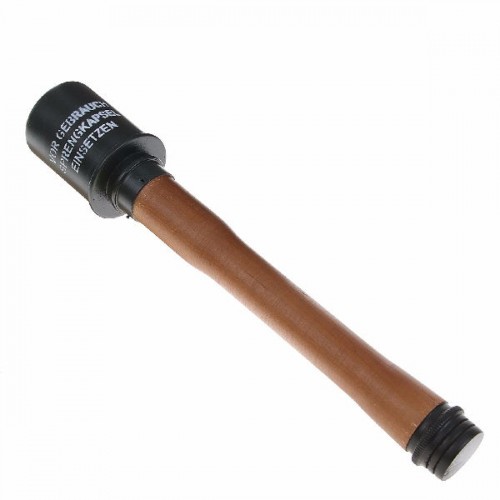 Макет гранаты М-24 является точной массогабаритной копией наступательного боеприпаса, рассчитанной на поражение врага ударной волной и осколками. В оригинальном образце для приведения его в действие необходимо было отвинтить металлическую крышку внизу рукоятки, и выдернуть шнур с фарфоровым шариком на конце. Стержень запала изготовлен из металла, при выдергивании шнура происходит процесс трения о химическое вещество, и запал воспламеняется.
