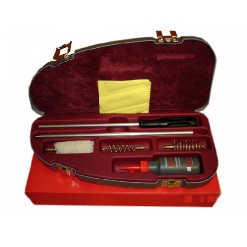 В набор от фирмы Benelli – Gun cleaning kit входит сборный шомпол с рукояткой, два металлических ершика, шлифовочный ерш, 5 специальных салфеток и масло MF-82 во флаконе (50 мл). Масло MF-82 не содержит щелочных компонентов, позволяет эксплуатировать ружья до температуры -32С и служит эффективным средством бережного обращения с оружием.