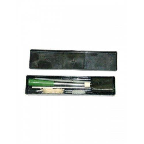 В комплект входят: разборный шомпол, вишер и три ерша: щетинистый, спиральный и пуховка для нанесения масла. Шомпол разборный металлический 3-х коленный с пластиковой ручкой. Служит для чистки канала ствола после стрельбы, смазывания канала ствола после чистки, удаления ржавчины, появившейся на поверхности канала ствола, освинцовки. Ерш металлический спиральный предназначен для очистки канала ствола от появившейся ржавчины и освинцовки. Ерш охотничий щетинный пластиковый. Щетинной щеткой чистят канал ствола и наносят на него смазку - нейтральное ружейное масло. Вишер петлевой - в него пропускают кусок ветоши или тряпки, чтобы снять остатки масла со стенок канала ствола. Пуховка удобна при промывке стволов горячей водой: она играет роль поршня, засасывая в ствол налитую в таз жидкость. Применять пуховку для нанесения смазки на каналы стволов, как это часто рекомендуют, можно, однако после этого в них остается много волокон. Флакон п/э под масло. В масленке хранят нейтральное ружейное масло. Упаковка - пластиковый футляр.