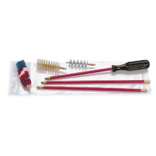 Набор для чистки гладкоствольного оружия 12 калибра в полиэтиленовом пакете с металлопластиковым шомполом - стальным внутри с оболочкой из мягкого пластика. Достоинство такого шомпола - он более "гигиеничен" для оружия, чем металлические - не повреждает внутреннюю поверхность ствола, хромировку.