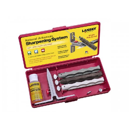 Набор для заточки Lansky Natural (3 камня).предназначен для простой, быстрой и качественной заточки режущей кромки ножей. Набор состоит из трех натуральных камней различной зернистости. Для грубой заточки темно-серый Natural Soft Arkansas зернистостью 300 Grit, для средней доводки темно-коричневый Natural Hard Arkansas, с зерном 650 Grit и тонкий финишный брусок Natural Blaсk Hard Arkansas в корпусе белого цвета зернистостью 1200 Grit.