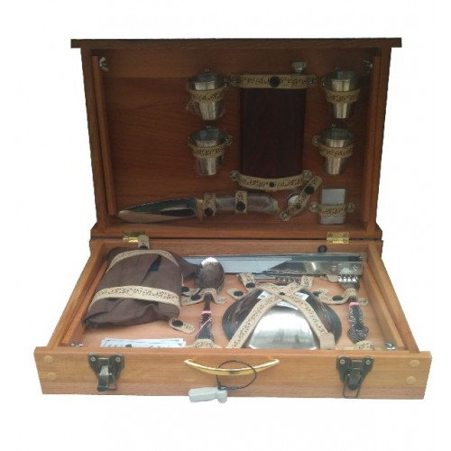 Этот набор идеально подойдет для отдыха на природе. Вы сможете налить горячительные напитки в стопки высшего качества, и поиграть с друзьями в шахматы.