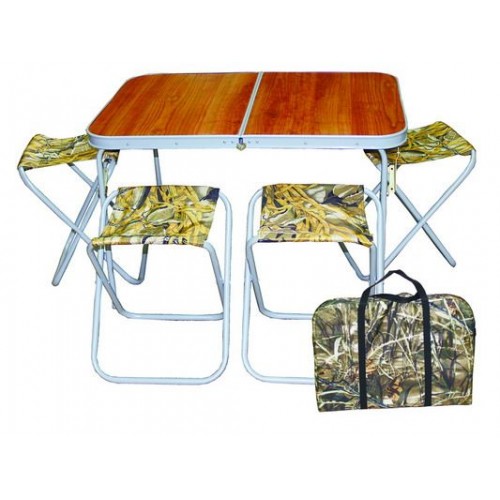 Набор мебели Автотурист выполнен на основе каркаса из стали. Столешница пластиковая со стальным обрамлением. Сидения стульев изготовлены из водонепроницаемой ткани, выдерживающей нагрузку до 100 кг.