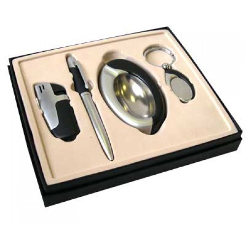 "Viron" - это красивые и оригинальные аксессуары и предметы обихода для мужчин, отличающиеся лаконичностью форм, благородством материалов, многофункциональностью, практичностью и стильным исполнением. Подарочный набор "VIRON": ручка, пепельница, зажигалка, брелок. Подарочный набор "Viron", состоящий из авторучки, пепельницы, брелока и газовой зажигалки, прекрасно подойдет представительному мужчине. Эти аксессуары не только функциональны, они также выполняют эстетическую роль и подчеркивают изысканный вкус своего владельца. Предметы набора выполнены из высококачественного металла с отделкой из дерева. Набор упакован в подарочную коробку.