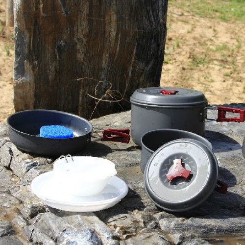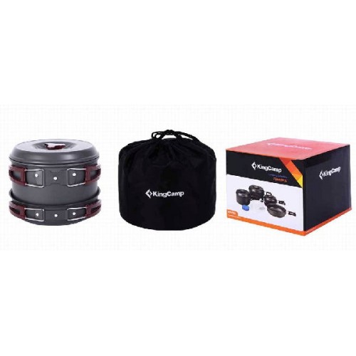 Походный набор посуды King Camp 3912 Climber на 4 персоны оборудован складными ручками, облегчающими транспортировку. Изготовлен из анодированного алюминия.