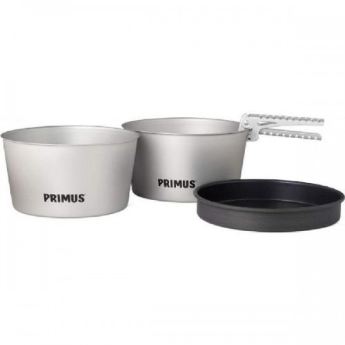 Набор посуды для готовки на свежем воздухе. В набор входят две кастрюли и сковородка, которые легко упаковываются друг в друга. Материал кастрюли - легкий алюминий. Материал сковородки - анодированный алюминий с антипригарным покрытием. Сковороду можно использовать как крышку для кастрюли.