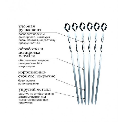 При приготовлении шашлыка важна каждая деталь, и особое внимание следует уделить шампурам. Набор шампуров Forester Mobile благодаря своим отменным качествам станет для вас идеальным спутником на каждом пикнике. Они подходят для приготовления различных видов мяса, овощей и рыбы. Благодаря угловой форме шампуров нанизанные кусочки будут плотно прилегать друг к другу, и не будут вертеться вокруг оси шампура в процессе готовки.