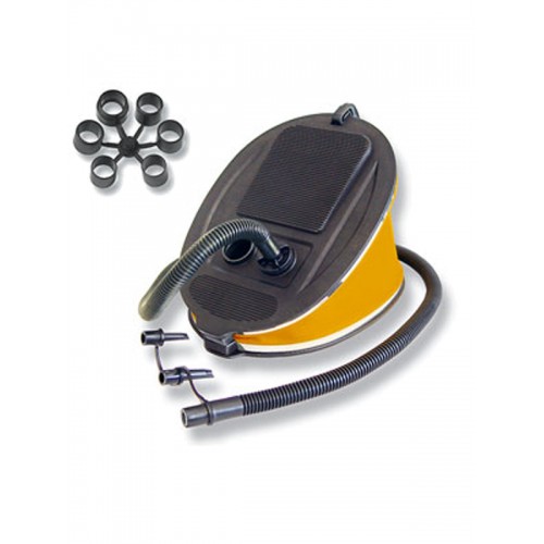Эта модель ножного насоса с объемом 6,0 литров служит для накачивания надувных аттракционов или небольших надувных лодок и позволяет развивать максимальное давление до 220 мБар. Размеры: 29 х 21 х 7 см. Комплектуется тремя типами штуцеров и набором переходников для различных типов клапанов.