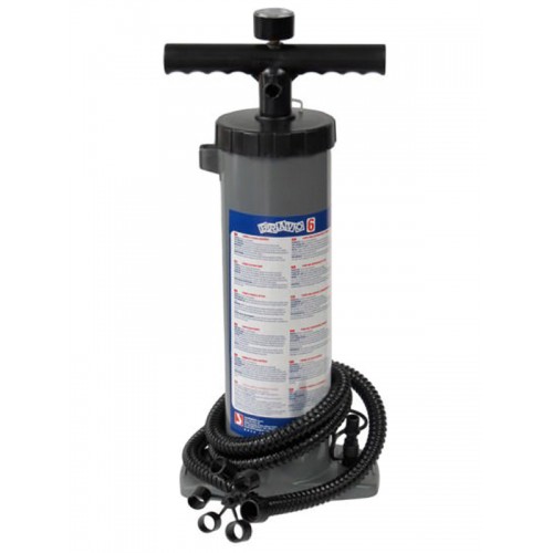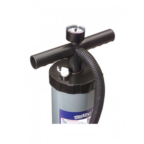 Насос двойного действия с объемом 2,5+2,5 л имеет встроенный манометр и может быть легко преобразован в насос прямого действия, для чего достаточно извлечь заглушку. В этом случае насос будет действовать только при нисходящем движении поршня, что облегчает усилие, необходимое для докачивания баллонов до 600 мБар.