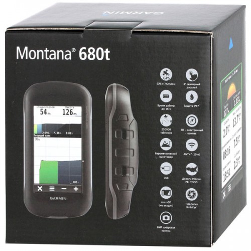 Устройство Montana 680, оснащенное цветным сенсорным экраном с двойной ориентацией и возможностью работы в перчатках, включает подписку на спутниковые изображения BirdsEye на 1 год. Цифровая камера обеспечивает высококачественные снимки, высокое разрешение и автоматическое добавление к фотографиям геометок с координатами. В России прибор продается с предустановленными картами Дороги России. РФ. ТОПО.