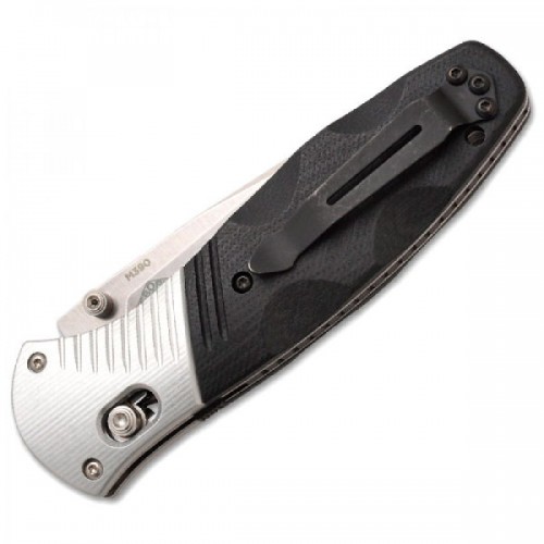 Клинок в форме Drop Point уверенно выполняет качественный рез, обладает отличными характеристиками для проведения тяжелых пробивных работ. Конструкция рукояти из стальных лайнеров (сталь 420J2) и прочных накладок из G10 и алюминия - надежна и практична. Благодаря своей великолепной, изящной форме, небольшим боковым насечкам и выборкам на накладках, рукоять полностью заполняет ладонь, что делает хват максимально комфортным, удобным и безопасным. BM580 оснащен предохранителем, позволяющим фиксировать лезвие, как в открытом, так и в закрытом положении, а так же замком Axis-lock , одним из самых надежных. Barrage имеет вороненную переставляемую клипсу для ношения в кармане и отверстие для темляка или шнурка.