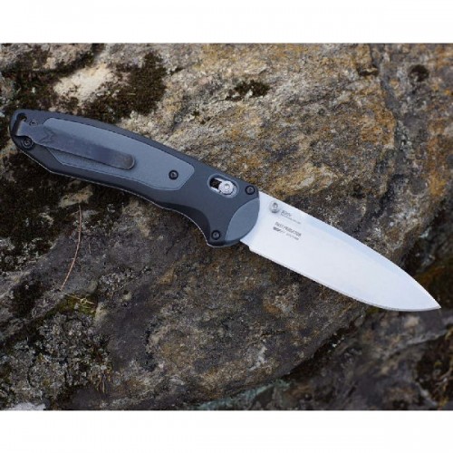Клинок складного ножа Boost 590 Benchmade выполнен из высококачественной нержавеющей стали CPM S30V. Клинок устойчив к коррозии и хорошо держит заточку, имеет защитное сатинированное покрытие, устойчивое к внешнему воздействию. В основании клинка имеется универсальный шпенек для открывания, который позволяет открывать нож и правой, и левой рукой. Запатентованный механизм раскрытия подпружинен и имеет фиксатор. Замок ножа отлично держит клинок в открытом положении.