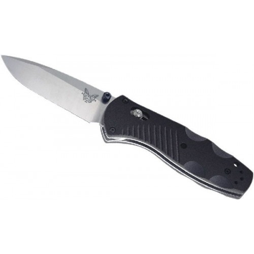 Benchmade Mini Barrage. Замок Axis Lock. Подпружиненная система отпирания клинка. Рукоятка стеклонаполненный полимер Valox. Лайнеры из нержавеющей стали 420J. Длина общая 17,6 см. Толщина клинка 2,5 мм. Твердость клинка 58-61 Hrc. Масса 96 гр. Комплектуется двухсторонней съемной клипсой для ношения на одежде. В рукоятке имеется отверстие для страховочного шнура или темляка.