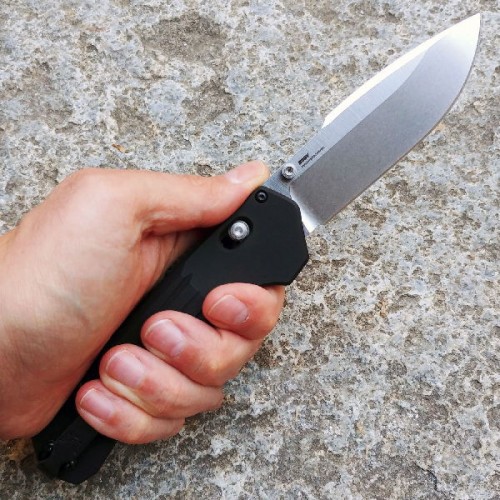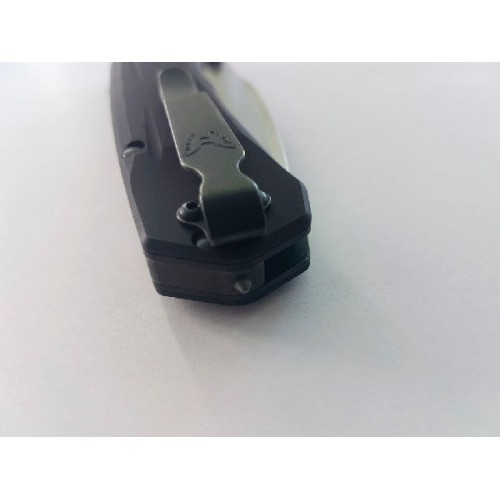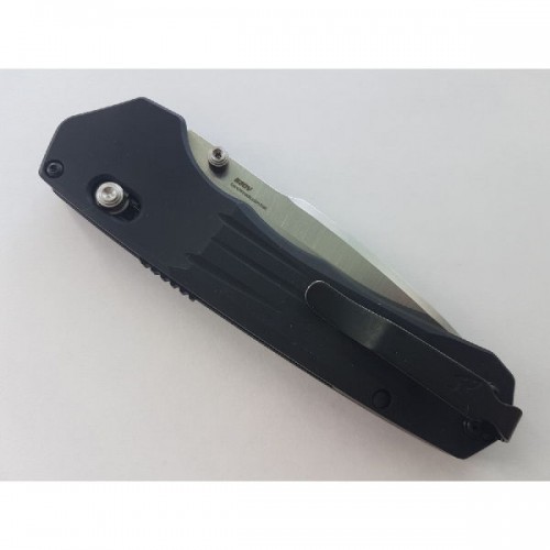 Подпружиненный клинок извлекается с помощью классических шпеньков и фиксируется фирменным замком типа Axis-lock . Кроме этого, функциональность ножа предусматривает съёмную клипсу, с возможностью установки как под правую, так и под левую руку, а также небольшой стеклобой.