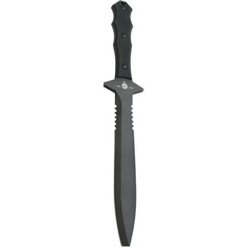 Blackhawk XSF-1 - серьезный и надежный нож, подходящий для самых тяжелых задач. Клинок из инструментальной стали А2 и рукоять с накладками из стеклотекстолита представляют собой цельную конструкцию, двусторонняя гарда защищает руку от травм. С обоих сторон клинка ближе к рукояти есть участки с серрейторной заточкой, что также дает возможность легко резать стропы или канаты.