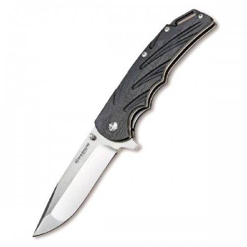 Если вы пока не готовы переплачивать за брендовый нож, но при этом есть огромное желание получить нож с передовым дизайном и сложной геометрией, вам стоит обратить внимание на модель Boker Magnum Impressive. В качестве материала для клинка здесь используется классическая нержавейка 440A, которую в обиходе называют ножевой сталью. Главная особенность этого сплава - высокое содержание хрома и небольшое содержание углерода. Соотношение между этими элементами обеспечивает оптимальный вариант "твердость-упругость" и дает высокую защиту от коррозии. При ширине клинка в 4 миллиметра, такой нож имеет высокий запас прочности. Рукоятка из тактического стеклотекстолита имеет пропилы особой формы, которые отвечают за фиксацию ножа в руке в процессе работы.