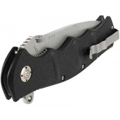 Нож подходит как для повседневного ношения, так и для тактических целей. Форма пластиковой рукояти удобна для удержания, а зубчатая площадка на обухе помогает контролировать положение пальца при резе. Даже если ваша рука в перчатке, нож можно легко открыть и левой и правой рукой. Рукоять снабжена функциональным стеклобоем, стальные вставки обеспечивают стабильность конструкции, а замок LinerLock – безопасность. Предусмотрена клипса для ношения на кармане.