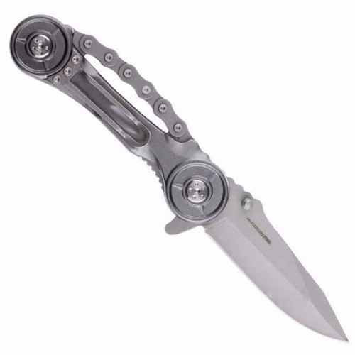 Складной нож Magnum Easy Rider удивляет своим дизайном, в рукоятку будто вставлены звенья велосипедной цепи, что делает его более практичным, обеспечивая надежный хват. Клинок выполнен из стали 440А твердостью 55-57 единиц (HRC). Лезвие фиксируется системой Liner Lock. Надежный фиксирующий механизм, качественная сборка, оригинальный дизайн делают эту модель безусловно привлекательной.