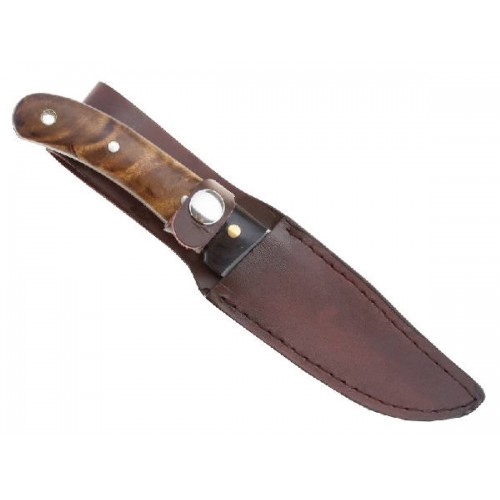 Фиксированный нож Elk Hunter - многофункциональный, универсальный охотничий нож среднего размера с удобной рукоятью из палисандра. Клинок выполнен из стали 440 твердостью 55-57 единиц (HRC), гладкая заточка лезвия. В комплект входят кожаные ножны темно-коричневого цвета.