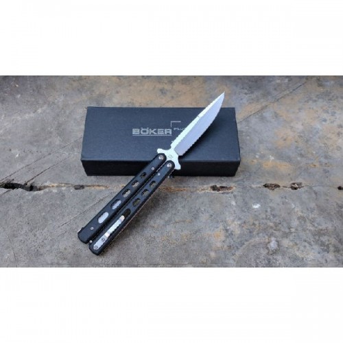 Дизайнерам складного ножа Plus Balisong компании Boker пришлось потрудиться, чтобы создать интересную модель для российского рынка. В этой реинкарнации нож получил облегченный клинок из классической ножевой нержавейки 440С, практически симметричный клинок кинжального типа с фальшлезвием и облегченные рукояти из тактического стеклотекстолита. Среди прочих интересных моментов стоит отметить наличие шпенька, который фиксирует нож в обоих положениях и стальную клипсу глубокой посадки для скрытого ношения в городских условиях.