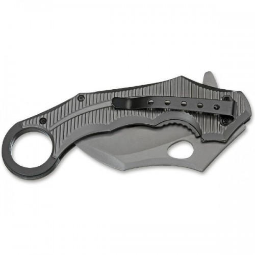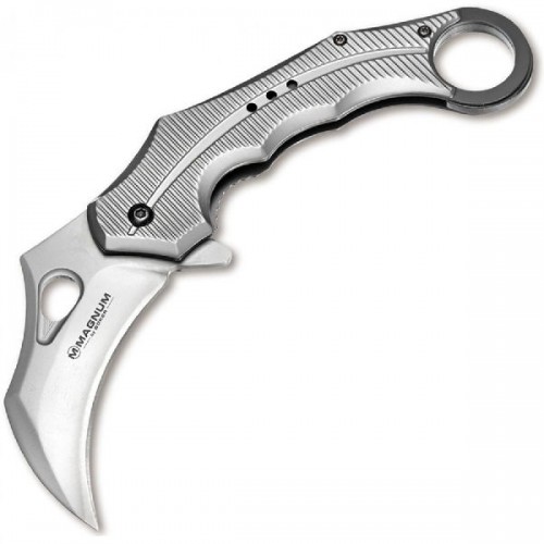 Taifun - керамбит из серии Boker Magnum. Нож имеет антибликовое покрытие Stone-wash и стальную рукоять с рифлёной текстурой. Кольцо, характерное для керамбитов, дополнительно оснащено шипом для увеличения функциональности. Керамбит имеет складную конструкцию, поэтому его легко можно носить на кармане.