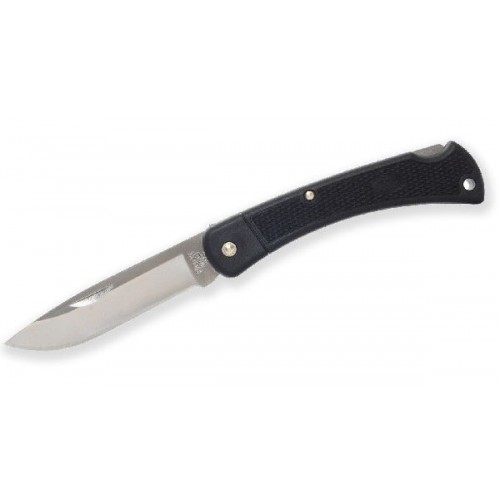 Рукоять здесь выполнена из формованного нейлона. Обладая той же твердостью и надежностью, что и термопластик, нейлон дает общий вес ножа всего девяносто один грамм, почти в три раза легче стандартной 0110BRS! А, значит, приходится нести более легкий груз, что немаловажно при длинных пеших переходах, и получится работать намного больше, не заставляя мелкие мышцы кисти ныть от напряжения.