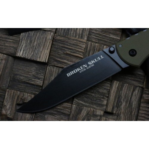 Складной нож Сold Steel Broken Skull 3 в цвете green - представитель лимитированной линейки, разработанной совместно с актёром и знаменитым рестлером Стивом Остином, который является заядлым охотником и любителем экстремальных вылазок на природу.