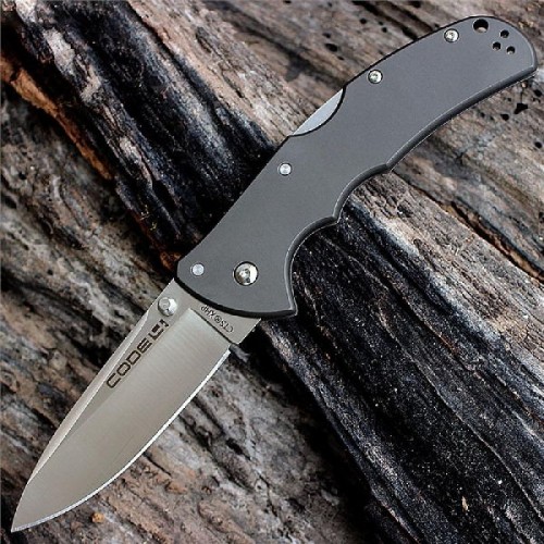 Ножи из этой серии немного отличаются от стандартных фолдеров CS наличием тонкой алюминиевой рукояти и отсутствием накладок из G-10 или пластика. Cold Steel позиционирует ножи из линейки Code 4 как служебный нож сотрудника полиции. Очевидно, что название Code 4 отсылает нас к специальным полицейским кодам («код 4» – дополнительная помощь не требуется). Рукоятка имеет великолепную отделку и подгонку. Все грани аккуратно скруглены, а сама конструкция кажется практически литой.
