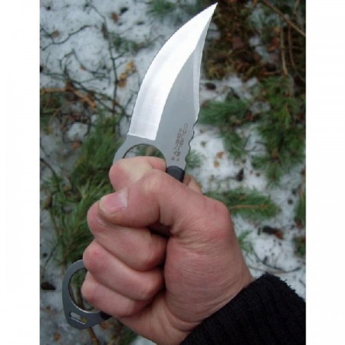 Если Double Agent I - это разновидность керамбита, клинок ножа Double Agent II обладает классической формой, напоминающей "боуи". Его лезвие производится из стали марки AUS 8. Рукоять отделывается первоклассным износоустойчивым пластиком Griv-Ex. Гладкая заточка позволяет использовать нож для любых целей. Этот нож своей основной особенностью имеет на рукояти специальные отверстия для двух пальцев, что полностью исключает возможность порезаться или уронить его. Главным тактическим достоинством модели представляется безопасность ношения и исключение выбивания ножа из рук, что дает преимущество в открытых поединках.