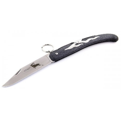 Складной нож Cold Steel "Kudu", выполненный в оригинальном стиле, станет отличным подарком для рыбака, охотника или человека, который ценит отдых на природе. Модель крайне легкая и отличается характерным плоским и заостренным лезвием. Нож легко помещается в рукаве или потайном кармане, чулке. Закрепление клинка при сложении происходит с помощью засечки на его поверхности. Рукоятка изготовлена из пластика, высокопрочного, ударостойкого и комфортного в применении. Металлическое колечко на ручке позволит фиксировать нож на одежде.Лезвие ножа изготовлено из высококачественной нержавеющей стали.