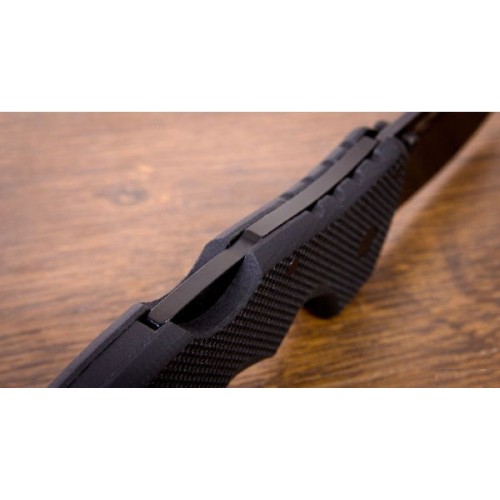Для изготовления рукояти коричневого цвета использован стеклотекстолит G10. Композитному материалу (стекловолокно и эпоксидные смолы) не страшны механические повреждения, перепады температур воздуха, открытый огонь. Рукоять не выскальзывает из рук, удобна в хвате и хорошо сбалансирована.
