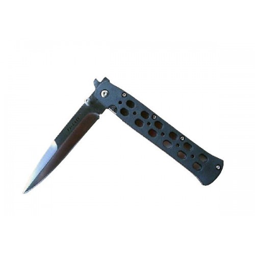 Продуманная конструкция данного ножа позволяет использовать его для решения широкого спектра задач. Для безопасности пользования модель оснащена фиксирующим замком Liner-Lock и имеет двухсторонние зацепы для скоростного открытия. Клинок копьевидной формы выполнен из японской антикоррозийной стали AUS 8А. Стеклопластиковая рукоять очень комфортна в работе, легко переносит температурные перепады, высокие нагрузки. Хорошую балансировку модели обеспечивают 2 ряда отверстий на рукояти, на клинке есть не заточенное фальшлезвие.