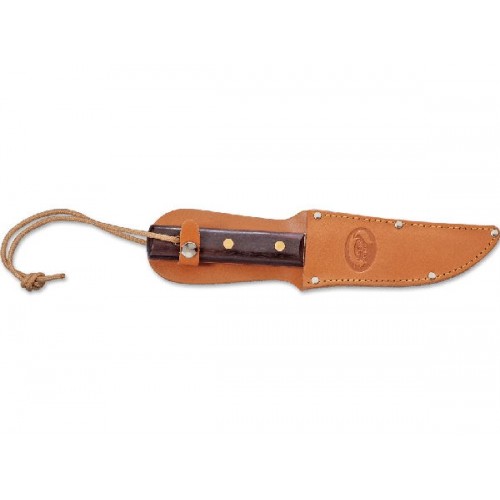 Нож Old Fox поставляется в комплекте с ножнами из натуральной кожи. Ножны имеют петлю для ношения на поясе и ремешок с клёпкой для более надёжного удержания ножа.