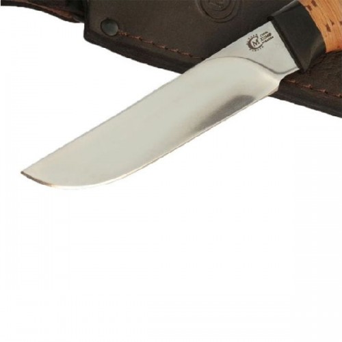 Клинок изготовлен из стали Х12МФ, а это значит, что его острота заточки на высоте. Установлено, что даже после разделки по костям и вскрывания металлических банок лезвие ножа остаётся острым, без засечек. Такой клинок славится своей прочностью, сталь выдерживает морозы и жару, при этом лезвие не портится.