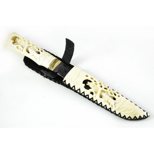 Нож ИП Семин Путник дамасская сталь литье кость ножны кость ажур