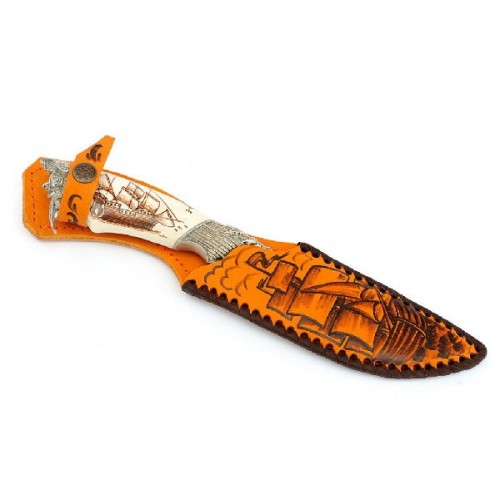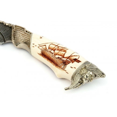Нож ИП Семин Путник дамасская сталь литье пират кость