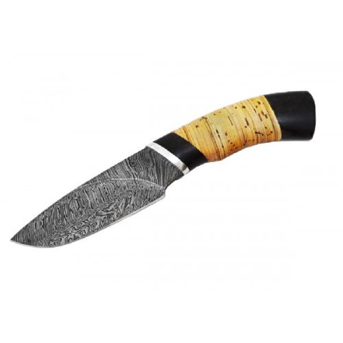 Для каждой разновидности ножа требуются определенные свойства, однако устойчивость режущей кромки к износу, или способность ножа долго «держать» заточку востребована всегда. Название ножа «Разделочный» красноречиво говорит о том, где он будет использоваться - для разделки туш и мяса. Материал лезвия - дамасская сталь, которая придает данному ножу требуемые для такой работы характеристики: прочность и остроту кованого лезвия и стойкость к образованию сколов. Конструкция ножа «Разделочный» такова, что он не является холодным оружием. Рукоять ножа изготовлена из бересты, скошенная гарда и тыльник - из черного дерева.