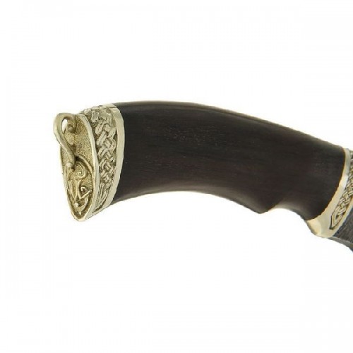 Для каждой разновидности ножа требуются определенные свойства, однако устойчивость режущей кромки к износу, или способность ножа долго «держать» заточку востребована всегда. Название ножа «Разделочный» красноречиво говорит о том, где он будет использоваться - для разделки туш и мяса. Материал лезвия - дамасская сталь, которая придает данному ножу требуемые для такой работы характеристики: прочность и остроту кованого лезвия и стойкость к образованию сколов. Конструкция ножа «Разделочный» такова, что он не является холодным оружием. Рукоять ножа изготовлена из черного дерева.