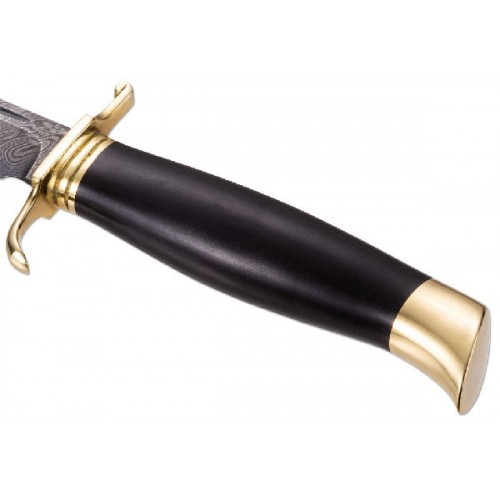 Клинок ножа выполнен из дамасской стали. Дамасская сталь отличается красивыми, удивительными узорами, покрывающие поверхность. Главные достоинства этой стали: долговечность, прочность, упругость, острота лезвия, а так же лезвия из данного материала не требуют частой и регулярной заточки.