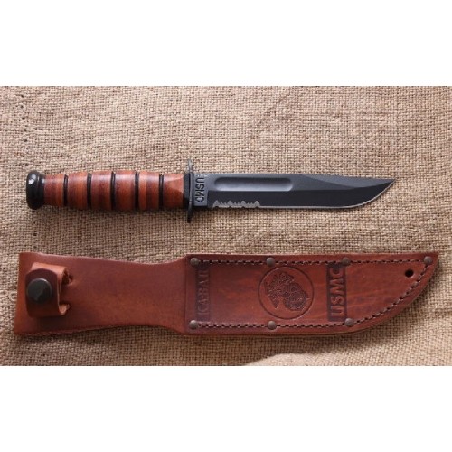 Нож Ka-Bar 1252 Short USMC сталь 1095 серрейтор рукоять кожа