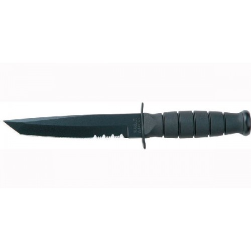 Это укороченная версия модели Ka-Bar 1245. Клинок - американский танто. Толщина обуха - 4 мм. Частичная серрейторная заточка. Присутствует антибликовое черное покрытие, защищающее от коррозии.