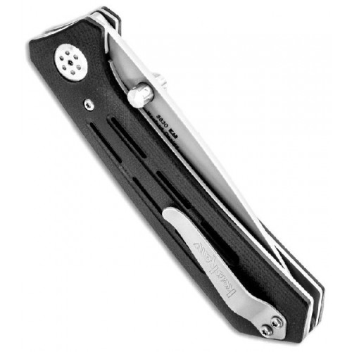 Открытие ножа происходит в ручном режиме с помощью шпенька, этот процесс происходит гладко и легко. Металлическая клипса позволит закрепить нож за край кармана, ремня или иную часть одежды и способна сделать ношение вашего ножа более удобным.